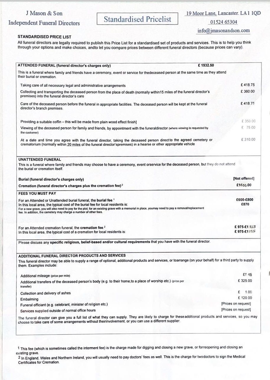 - An All Inclusive Traditional Funeral Package For £4,000 Including a limousine and specified third party costs